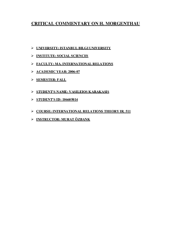 Pdf Critical Commentary On H Morgenthau Vasileios P Karakasis Academia Edu