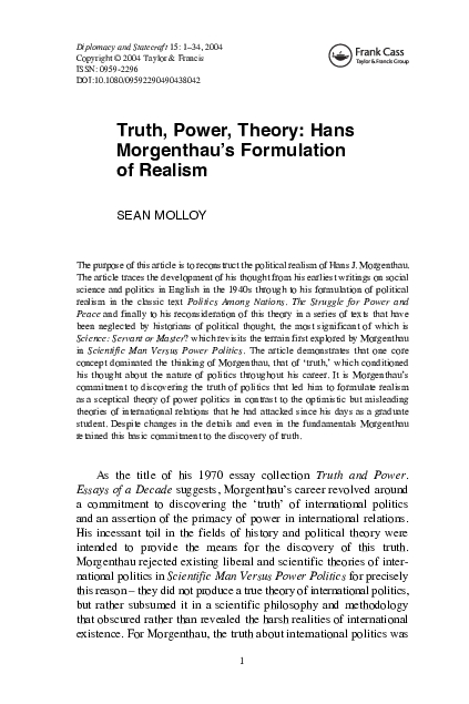 Pdf Truth Power Theory Hans Morgenthau S Formulation Of Realism Sean Molloy Academia Edu