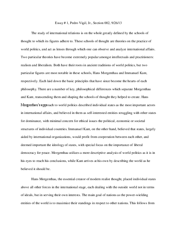 Doc Kant And Morgenthau S Differing Views On World Politics Pedro Vigil Academia Edu