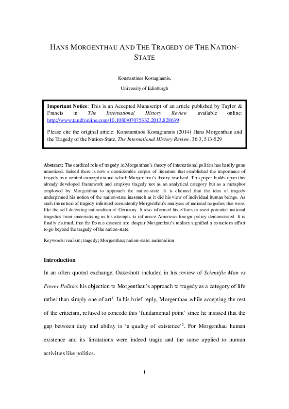 Pdf Hans Morgenthau And The Tragedy Of The Nation State Konstantinos Kostagiannis Academia Edu