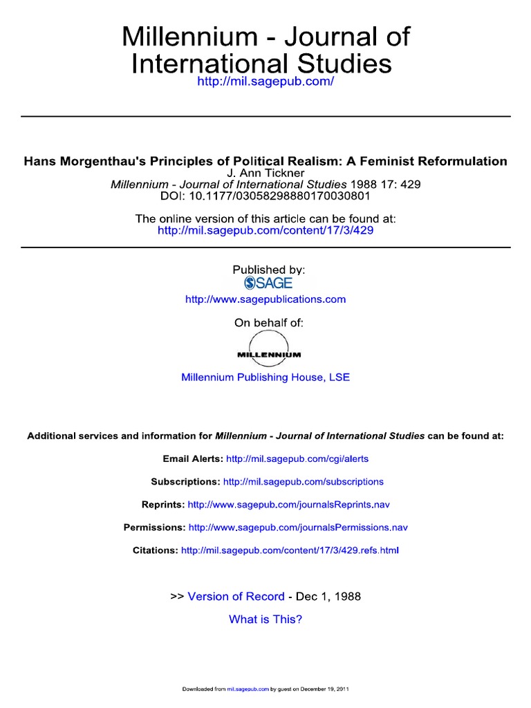 Ri 04a J Ann Tickner Hans Morgenthau S Principles Of Political Realism A Feminist Reformulation Pdf Pdf